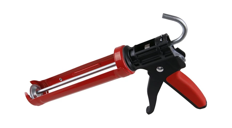Extrudáló pisztoly FESTA, PROFI, kiváló minőségű megerősített acél keret, valamint extrudáló és mozgó mechanizmus, tartós műanyagból készült nyél puha gumival a kényelmes munkavégzés érdekében, profilozott fém oldalak, tüske a megszáradt tömítőanyag tisztítására a tömítőanyag hegyében patron, felhasználás: megerősített keret extra vastag tömítőanyagokhoz - vegyi horgonyokhoz és habarcsokhoz, tömítőanyagok és ragasztók extrudálásához 310 ml-es patronokban.