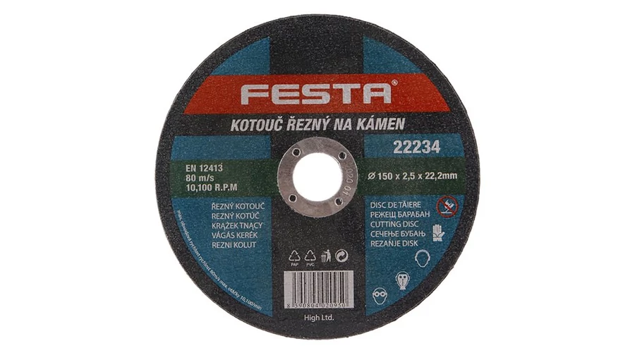 Szemcse típusa: Szilícium-karbid Kötőanyag: Aldehid alapú műgyanta Kivitel: egyenes Max. Működési sebesség: 80m/s Max. megengedett fordulatszám: 10200 1/min Kétrétegű üvegszálas betéttel megerősítve a szilárdság növelése érdekében.