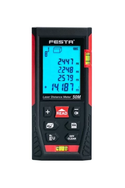 - folyamatos mérés, területmérés, térfogatmérés, a harmadik oldal hosszának számítása a Pitagorasz-tétel szerint, összeadás/kivonás, max./min. mérés re