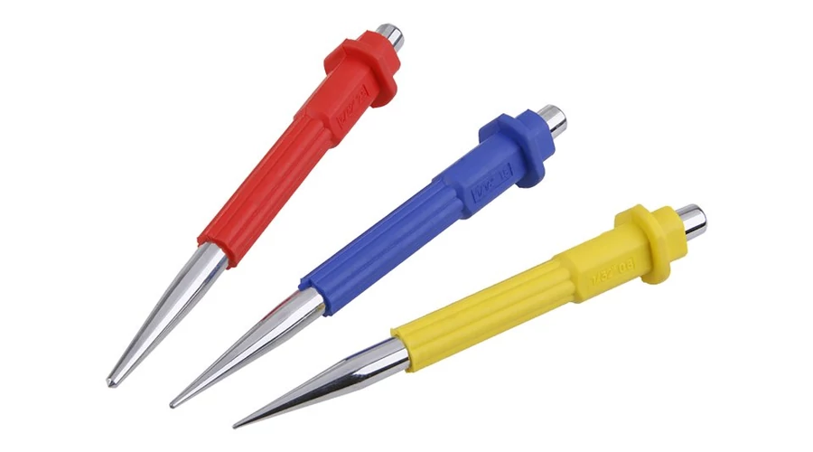 Minőségi FESTA lyukasztókészlet króm-vanádium acélból, gumi fogantyúval a kényelmes munkavégzés érdekében. A hegy átmérője 0,8, 1,5, 2,5 mm.