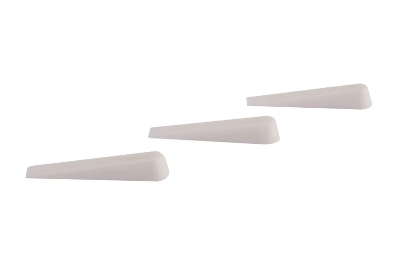 Műanyag ékek 0-4 mm, mennyiség: 100 db, felhasználás: azonos szélesség és hézagvonal biztosítására csempézéskor és csempézéskor csomagolás: eurolyukkal ellátott buborékfólia.