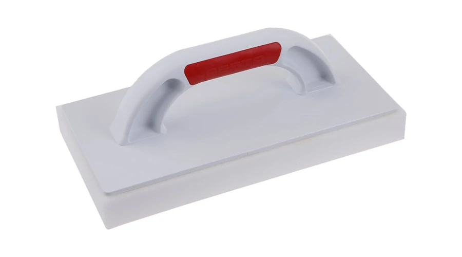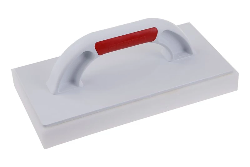 FESTA simító puha habbal, alapja kiváló minőségű műanyagból ergonomikus nyéllel, mérete: 280 x 140 x 30 mm, felhasználása: laza homok eltávolítására, finom stukkóhoz (kerashtuk), csempék lemosására fugázás után.