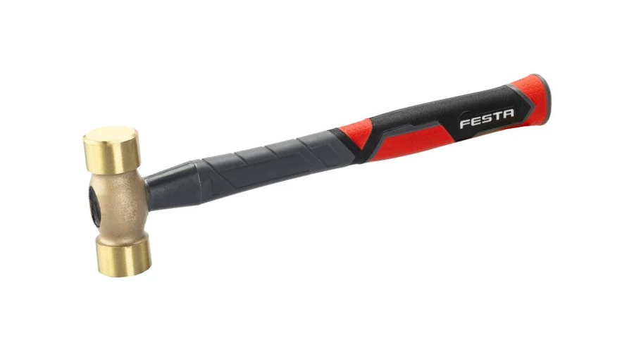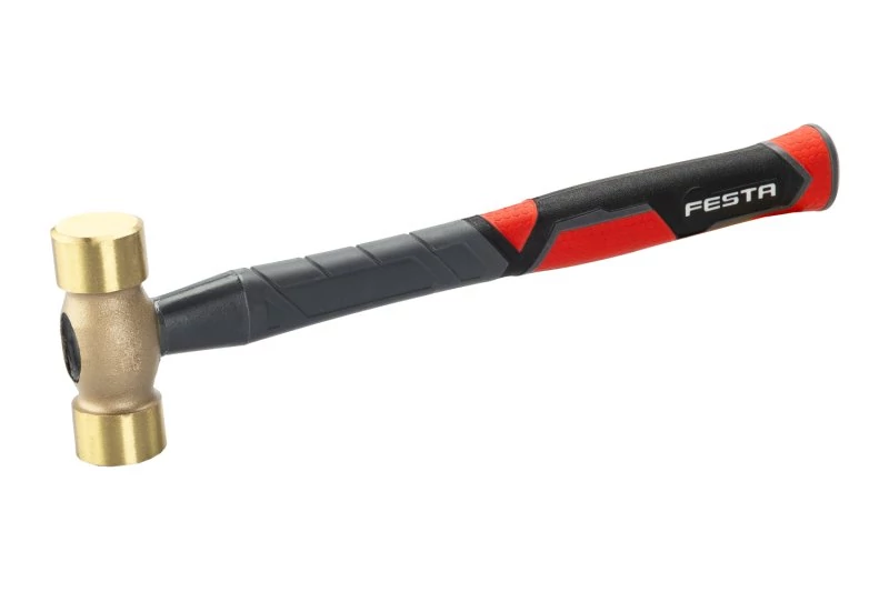Sárgaréz ütő FESTA 0,5 kg, ütőfelületek átmérője 30 mm, kiváló minőségű üvegszálas nyél gumírozott TPR markolattal, epoxi ragasztóval rögzítve, az ütő feje sárgaréz. A sárgaréz rudat ott használják, ahol nem lehet szikraképződés, az alkatrészek ülepedése stb.