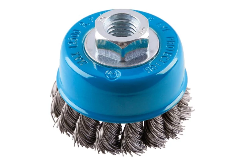 Forgókefe - csésze, kivitel: COPY - szabadalmaztatott rozsdamentes acélhuzal 0,5 mm - másolás, extrém terhelés mellett sem bomlik ki, FESTA kefék garantálják a minőségi felhasznált anyagokat és megmunkálást, átmérő 75mm, menet M14x2mm, huzalok száma: 720, huzal hossza: 18,5 mm, megengedett sebesség: 12500 1/min, felhasználás: festék, rozsda, sorja, hegesztési maradványok, salak eltávolítása, érdesítés, fém alkatrészek tisztítása, csomagolás: papírdoboz eurolyukkal.