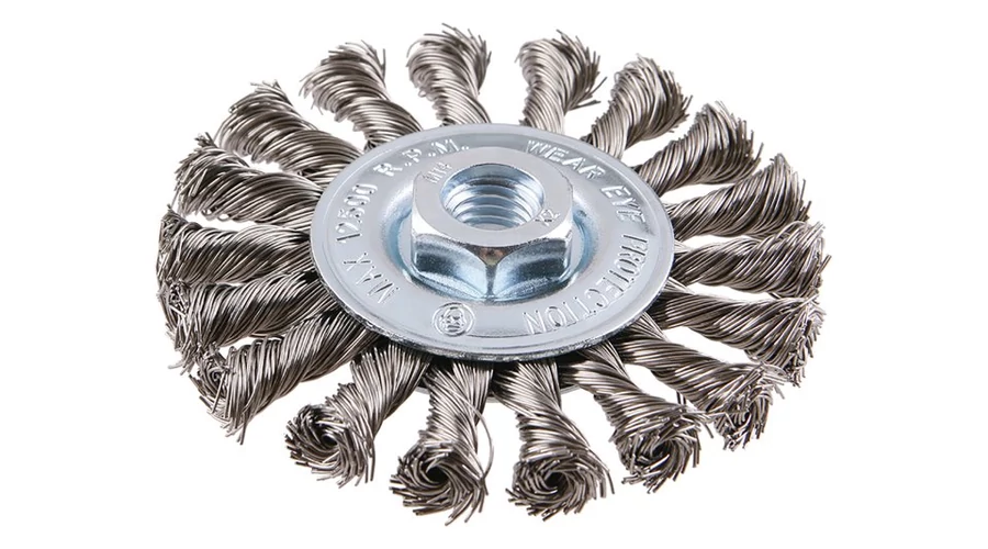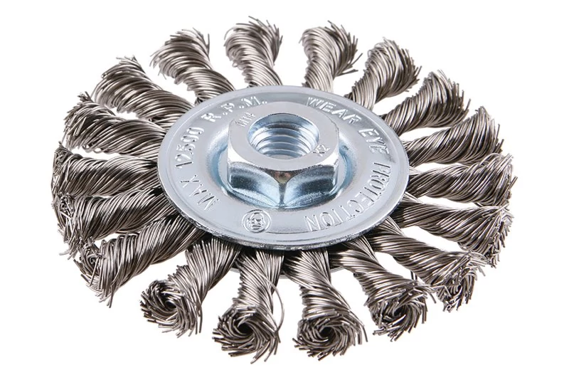 Forgókefe - radiális, kivitel: COPY - szabadalmaztatott rozsdamentes drót 0,5 mm - másolás, extrém terhelés mellett sem bomlik ki, FESTA kefék garantálják a minőségi felhasznált anyagokat és megmunkálást, átmérő 100mm, menet M14x2mm, horganyzott kefetest Huzalok száma: 828, huzalhossz: 22,5 mm, megengedett sebesség: 12500 1/min, felhasználás: festék, rozsda, sorja, hegesztési maradványok, salak eltávolítása, fém alkatrészek tisztítása, csomagolópapír doboz.