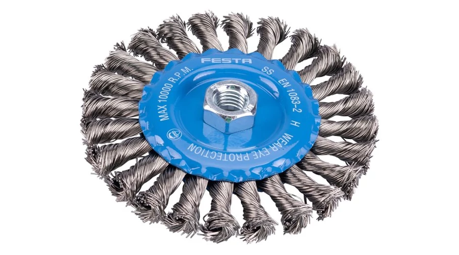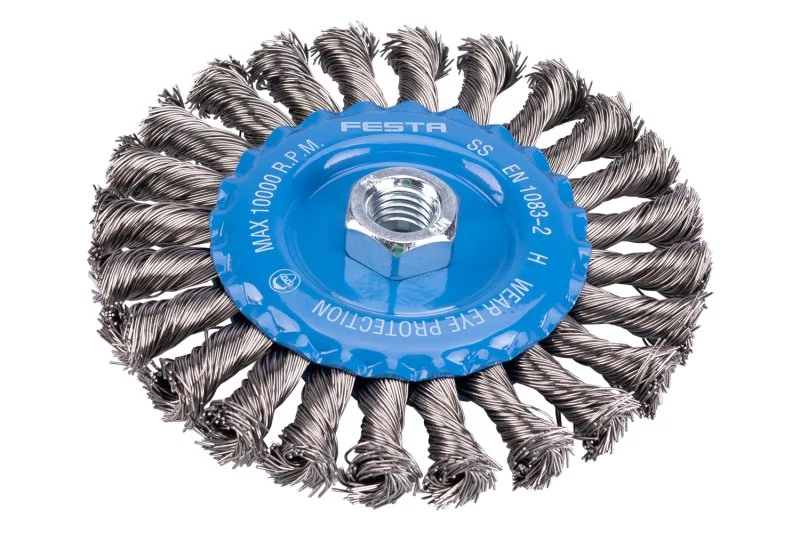 Forgókefe - radiális, kivitel: COPY - szabadalmaztatott rozsdamentes acélhuzal 0,5 mm - másolás, extrém terhelés mellett sem bomlik ki, FESTA kefék garantálják a minőségi felhasznált anyagokat és megmunkálást, átmérő 125 mm, menet M 14 x 2 mm, horganyzott kefetest , vezetékek száma: 1320, huzalhossz: 27 mm, megengedett sebesség: 10000 1/min, felhasználás: festék, rozsda, sorja, hegesztési maradványok, salak eltávolítása, érdesítés, fém alkatrészek tisztítása, csomagolópapír doboz euro lyukkal. .