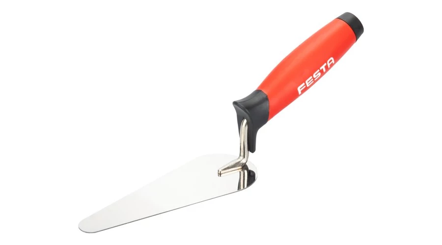 Macskanyelv kanál rozsdamentes acél FESTA 160 mm gumi nyéllel. Gipsz, stukkó stb. tisztítására és kezelésére szolgál. A kanál rozsdamentes acélból készült (vastagság 1,0 mm), nyél gumis, ergonomikus kialakítású.