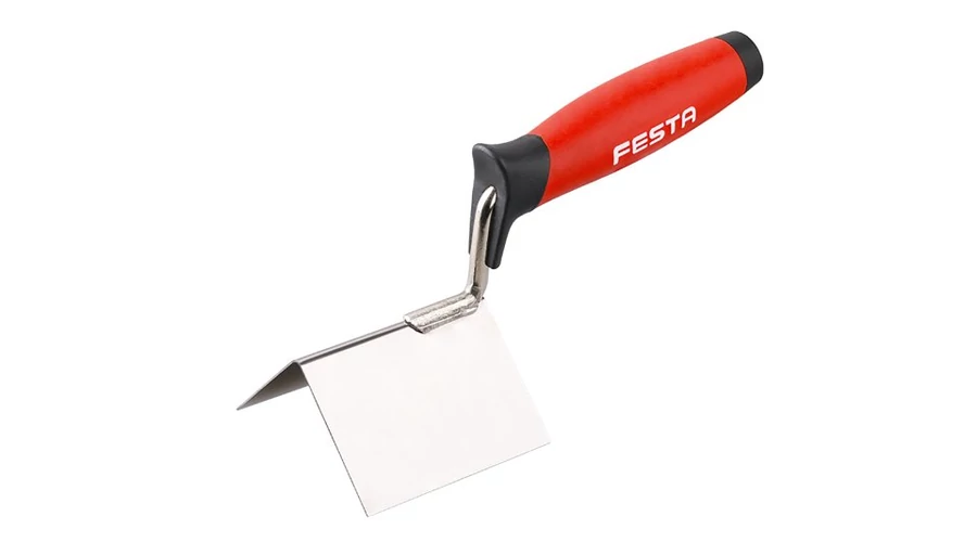 Saroksimító rozsdamentes kanál FESTA 40 mm gumi nyéllel. A sarokkanál kiváló minőségű rozsdamentes acélból készült, vastagsága 1,0 mm, nyele gumi, ergonomikus kialakítású. A radír a külső és a belső sarkok beállítására és tisztítására szolgál.