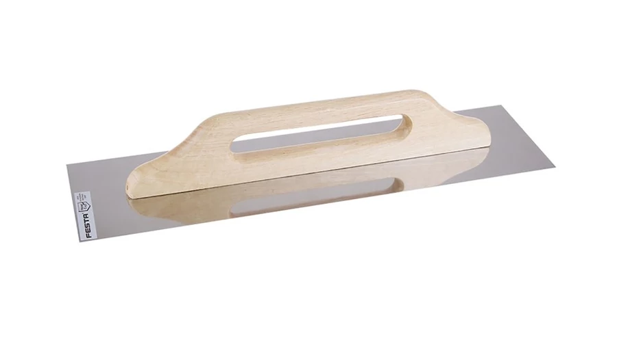 Rozsdamentes acél egyenes simító FESTA 500x130 mm fa nyéllel, lemezvastagság 0,7 mm. A penge tökéletes formájú, első osztályú edzett rozsdamentes acélból készült. Elsősorban csempék és burkolatok alá ragasztók felhordására, valamint esztrichek, stukkó, vakolatok, tömítőanyagok és egyéb építőanyagok felhordására használják.