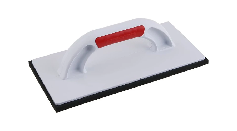 FESTA simító gumihabbal, alapja kiváló minőségű műanyagból, ergonomikus nyéllel, mérete: 280 x 140 x 10 mm, felhasználása: burkolólapokhoz, nagyon jó a keverék hézagba való felhordása.