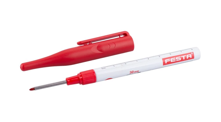 • csak a hegy átmérője 3 mm, lehetővé teszi a kis átmérők jelölését akár 30 mm vastag anyagokon keresztül is