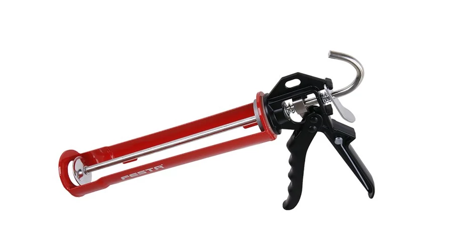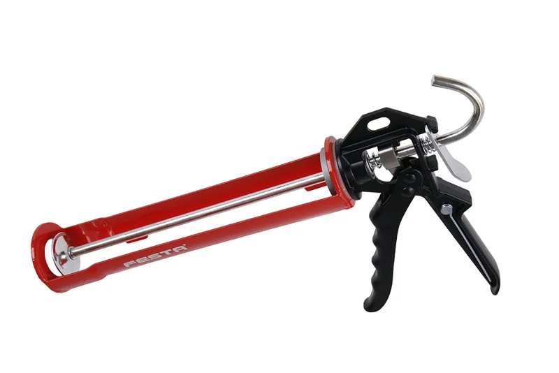 Extrudáló pisztoly FESTA, PROFI, minőségi megerősített és profilozott acélváz, valamint extrudáló és mozgó mechanizmus, a pisztolykeret zárt vége, fém ergonomikus fogantyú a kényelmes munkavégzés érdekében, profilozott fém oldalak, tüske a patron hegyében megszáradt gitt tisztításához, felhasználás: megerősített keret extra sűrű tömítőanyagokhoz - vegyi horgonyokhoz és habarcsokhoz, tömítőanyagok és ragasztók extrudálásához 310 ml-es patronokban.