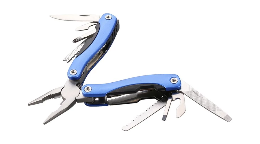 fogó, kés - penge 55 mm, fűrész - penge 55 mm, reszelő, csavarhúzók PH1 és lapos 4 és 2 mm, konzervnyitó, sörnyitó, horgász szerszám 5cm /2-es mérleggel" li>