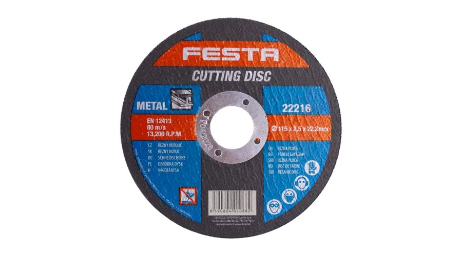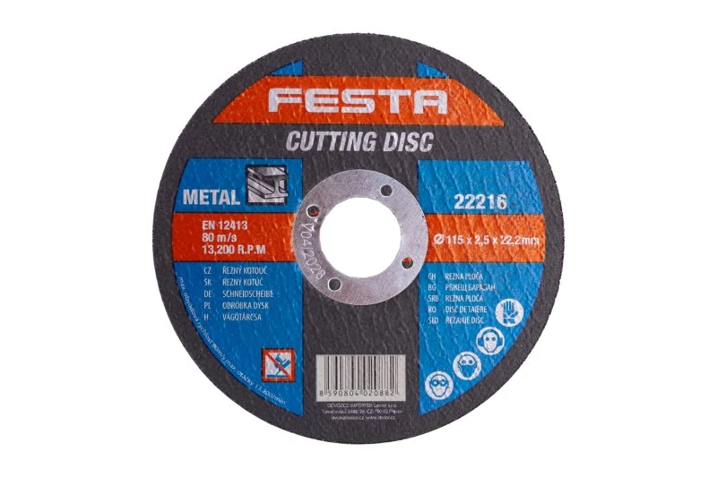 Szemcsetípus: Korund Kötőanyag: Aldehid alapú műgyanta Kivitel: egyenes Max. Működési sebesség: 80m/s Max. megengedett fordulatszám: 13300 1/min Kétrétegű üvegszálas betéttel megerősítve a szilárdság növelése érdekében. Fémen, öntöttvason használható.