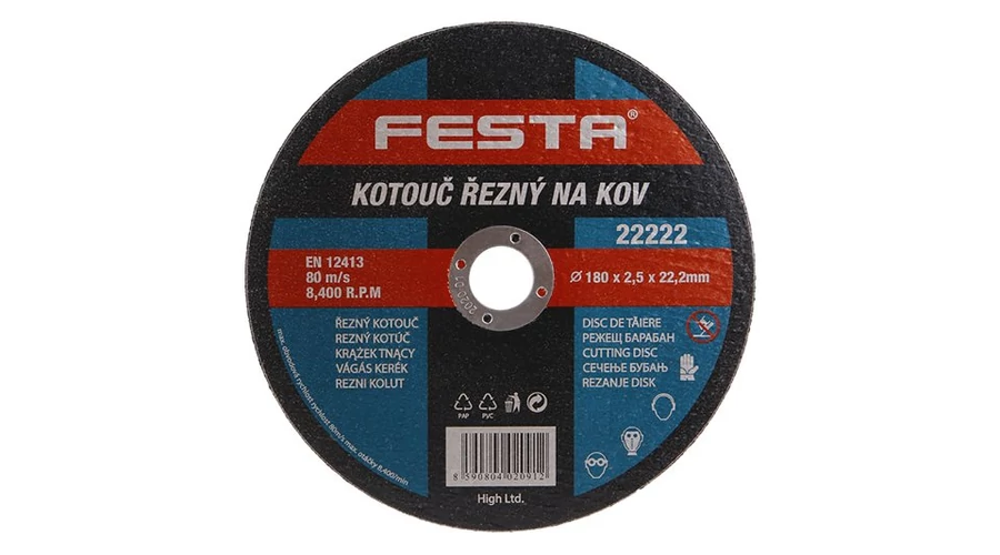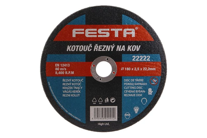 Szemcsetípus: Korund Kötőanyag: Aldehid alapú műgyanta Kivitel: egyenes Max. Működési sebesség: 80m/s Max. megengedett fordulatszám: 8600 1/min Kétrétegű üvegszálas betéttel megerősítve a szilárdság növelése érdekében. Fémen, öntöttvason használható.