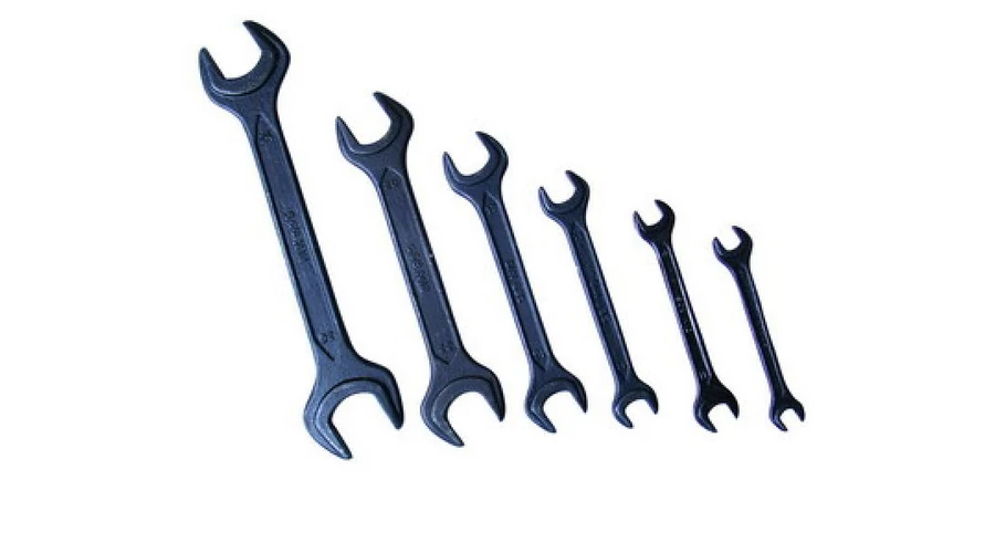A kulcskészlet minőségi króm-vanádium acél vasalatból készült, feketített felülettel, műanyag tekercses tokban. A kulcsok kombináltak - két méretben. Minőség, keménység és pontosság tekintetében megfelelnek a DIN 895 szabványnak.