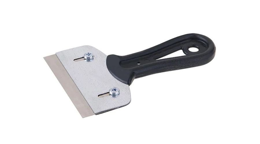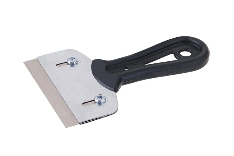 100 mm-es festőkaparó műanyag fogantyúval. Festészetben, festészetben használják. Alkalmas régi vakolat lekaparására.