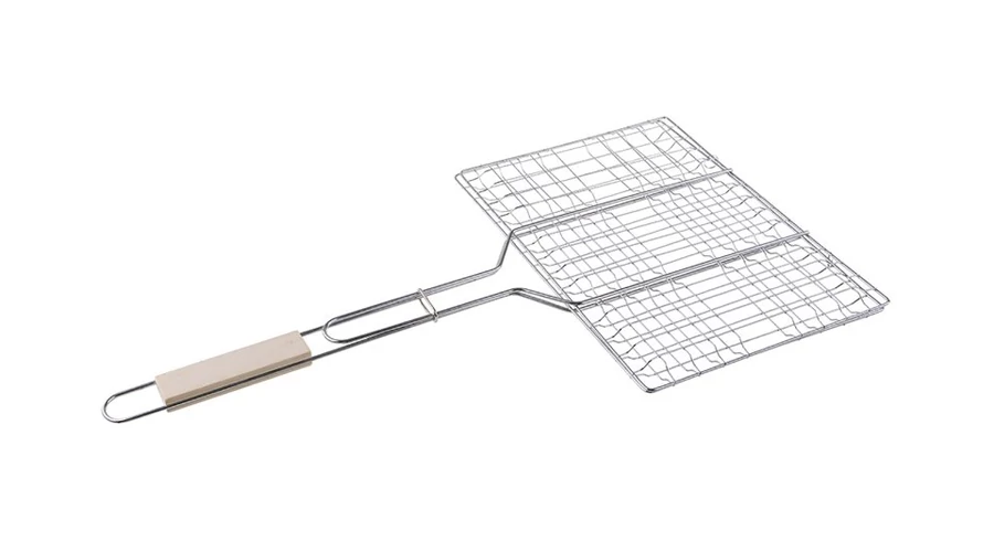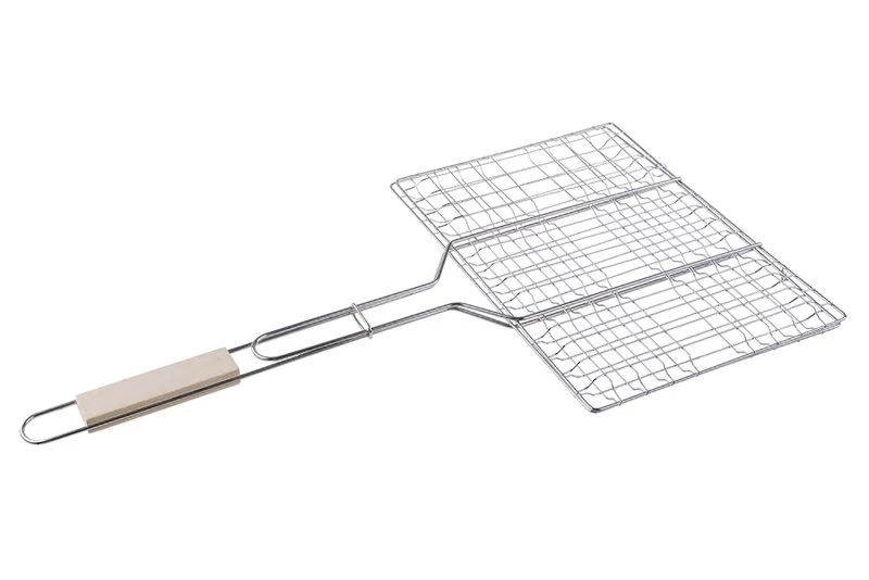 Forgatható grillrács, felhasználása: ideális hús, zöldség és egyéb grillkülönlegességek grillezésére, grillrács a két rács felépítésének köszönhetően, amelyek közé a grill ételt rakjuk - lezárjuk, biztosítótűvel rögzítjük és ráhelyezzük a grill - rácsot, és könnyedén megforgathatunk egyszerre több adagot és így könnyen elérjük az étel megfelelő hőkészítési szintjét.