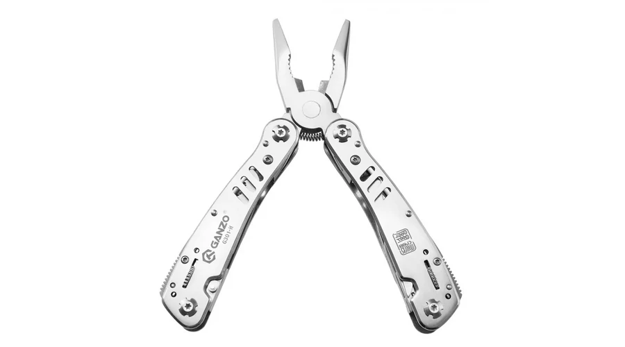 Ganzo G301-H Multi-Tool 440C rozsdamentes acél pengékkel és ezüstszínű markolattal, 26 funkcióval, bitkészlettel, tokban.