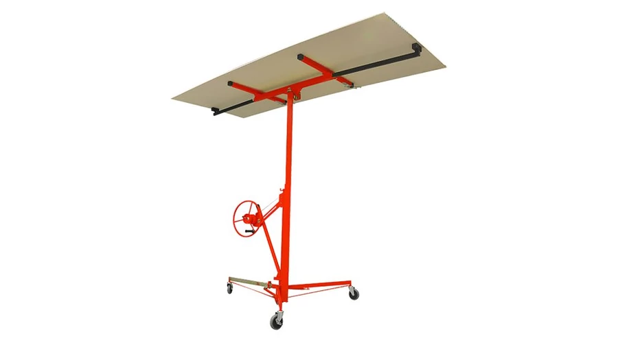 A gipszkarton panelekhez készült csörlős emelővel csak 1 személy emelheti és kezelheti a gipszkarton paneleket segítség nélkül. A panelek maximum 3440 mm magasságig emelhetők a mennyezethez és a falakhoz való rögzítéshez. A paneltartó a kívánt szögbe dönthető. A tartó a padló felett 1530 mm-re süllyeszthető a gipszkarton egyszerű berakása érdekében. Terhelhetősége 54 kg.