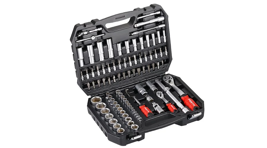 A kiváló minőségű gola készlet a felhasznált anyagok minősége és a professzionális autóműhelyben vagy szervizben történő feldolgozás miatt megfelelő. 10 év garancia. Minden alkatrész kiváló minőségű króm-vanádium acélból készül. Nikkel bevonat. A fúróhegyek S2 ötvözött acélból készültek. A racsnis 72 fogas finom felosztású, a racsnis teste CrV acélból, a fogszerkezet S2 acélból készült, a fogantyú pedig ergonomikus kialakítású, ártalmatlan gumival. Új kialakítású, elsődleges anyagból készült műanyag tok fém záródással és fedél zsanérokkal.