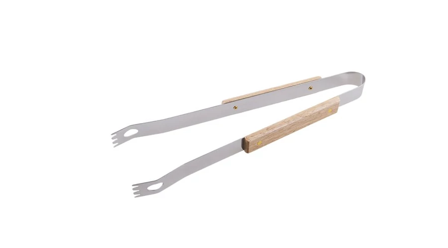 Grillező fogó, rozsdamentes acél / fa, mérete: hossz 33 cm, felhasználás: grillezéshez, főzéshez, otthon, kertben, kempingezéskor..., ételek egyszerű és biztonságos kezelése hőkezeléskor grillen, serpenyőn.. ., csomagolás: buborékfólia Euro lyukkal .