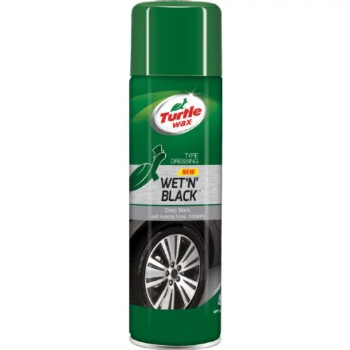 Turtle Wax Wet 'n Black gumiápoló, oldószer és szilikon egyedi keveréke, mely azonnali ragyogást és csillogó-nedves hatást kölcsönöz a gumiknak.