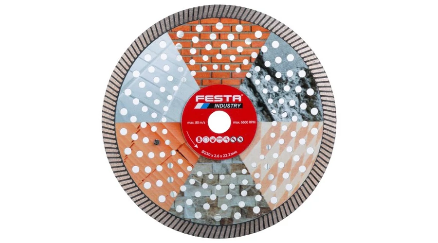 - speciális szegmensforma magas gyémántszemcsetartalommal beton, vasbeton, gránit, kemény burkolólapok és csempe igényes vágásához , kő, falazat stb., márványra, kerámiára és üvegre is használható