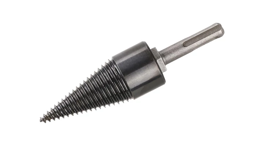 - speciális menetes hasítófej forma a fa gyors hasításához SDS+ fejű fúróval