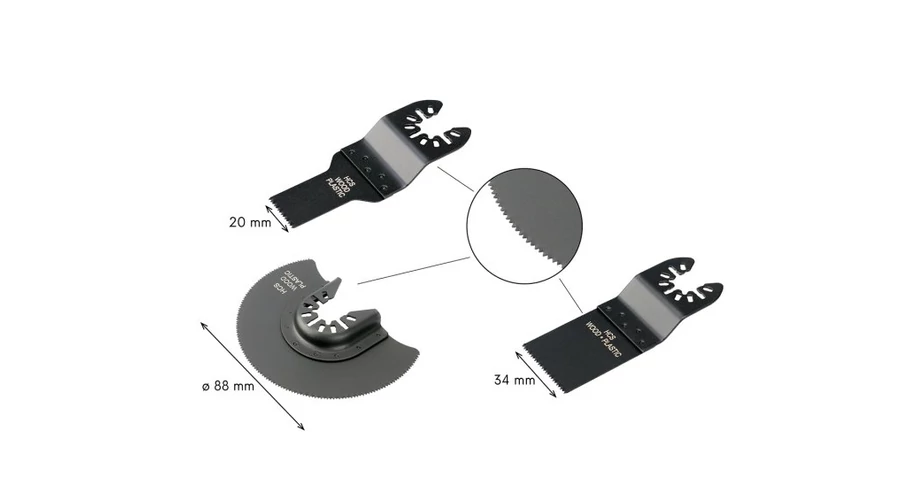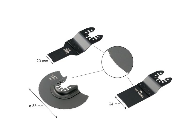 három szerszámból álló készlet univerzális OIS rögzítéssel oszcilláló csiszolókhoz