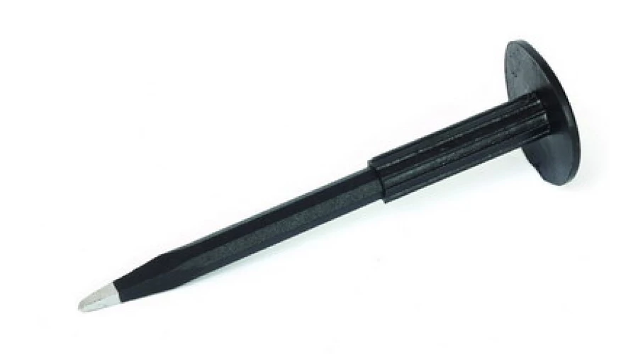 Véső (majzlík, majzl) hegyes műanyag védelemmel. Alkalmas kő, tégla, építőanyag megmunkálására.