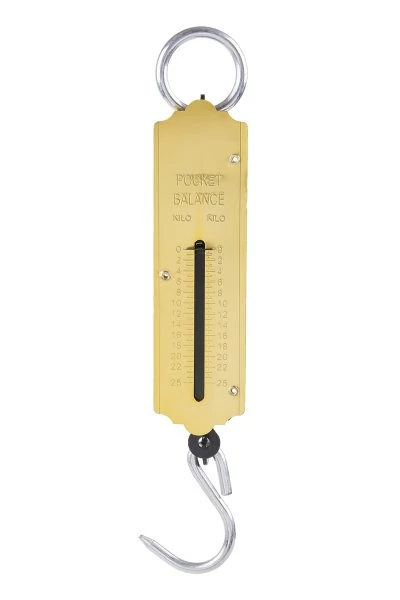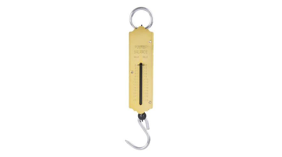 Hordozható rugós mérleg horgászok, vadászok, kertészek stb. számára. Maximális terhelés: 25 kg.