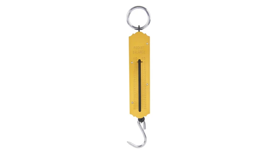 Hordozható rugós mérleg horgászok, vadászok, kertészek stb. számára. Maximális terhelés: 50 kg.