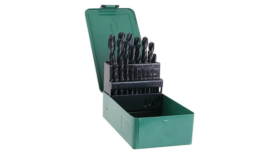 A DIN 338, RN HSS fúrókészlet kiváló minőségű gyorsacélból (HSS) készül. Precíziós gyártású spirál a minőségi teljesítményért, pontosságért és jó központosításért, 118°-os fúróhegyű sarokcsiszolás, közönséges szerkezeti acél fúrásához, bádogdobozba csomagolva.