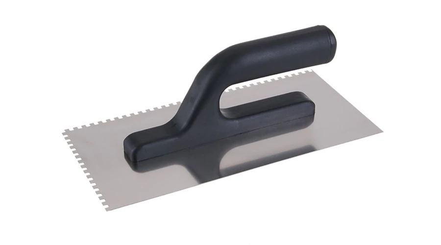 Rozsdamentes simító 270x125 mm műanyag nyéllel, e4 fog, 0,7 mm lemezvastagság. A penge tökéletes formájú, edzett rozsdamentes acélból készült. Elsősorban csempék és burkolatok alá ragasztók felhordására, valamint esztrichek, stukkó, vakolatok, tömítőanyagok és egyéb építőanyagok felhordására használják.