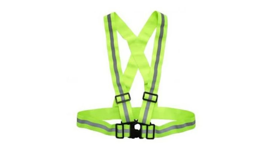 Állítható pántokkal, csattal tökéletesen rögzíthető a felsőtestre. A nappali láthatóságért a neonsárga elasztikus alapanyag, az éjszakai láthatóságért pedig a reflektív csíkok gondoskodnak.