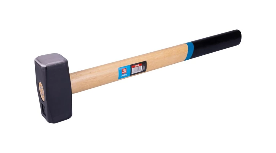 Fából készült pálca 3000g lakkozott ergonómikus fogantyúval. Kétoldalas kovácsolt fej, ferde élekkel. Kör alakú ék.