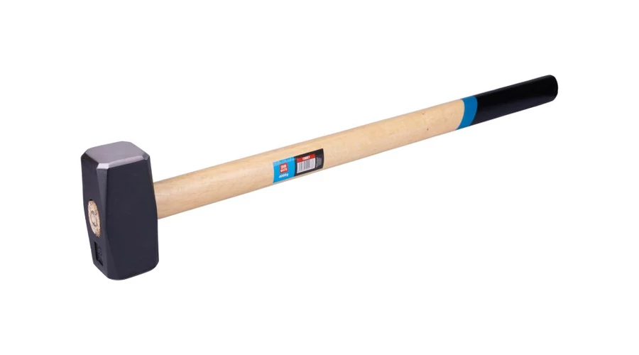 Fából készült pálca 4000g lakkozott ergonómikus fogantyúval. Kétoldalas kovácsolt fej, ferde élekkel. Kör alakú ék.