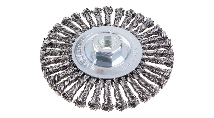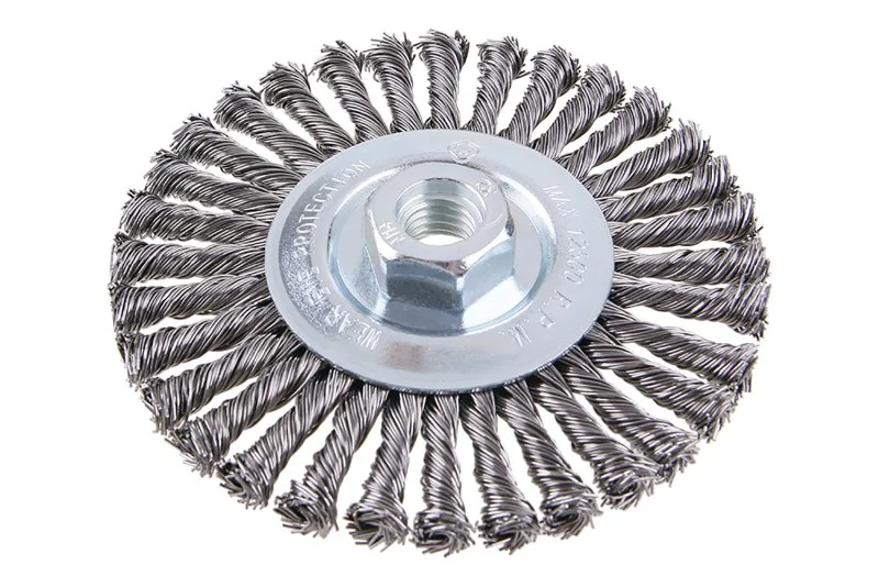 Forgókefe - radiális, kivitel: COPY - szabadalmaztatott huzal 0,5 mm - másolás, extrém terhelés mellett sem bomlik ki, a FESTA kefék garantálják a minőségi felhasznált anyagokat és megmunkálást, átmérő 100 mm Menet M14x2mm Horganyzott kefetest Huzalok száma: 1584, Huzal hossza: 27mm max. megengedett sebesség: 10000 1/min Alkalmazás: festék, rozsda, sorja, hegesztési maradványok, salak eltávolítása, érdesítés, fém tisztítása