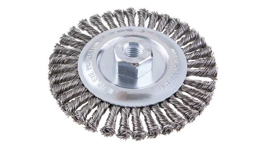 Forgókefe - radiális, kivitel: COPY - szabadalmaztatott huzal 0,5 mm - másolás, extrém terhelés mellett sem bomlik ki, a FESTA kefék garantálják a kiváló minőségű felhasznált anyagokat és feldolgozást, átmérő 125 mm Menet M14x2mm Horganyzott kefetest Huzalok száma: 1584, Drót hossz: 27mm max. megengedett sebesség: 10000 1/min Alkalmazás: festék, rozsda, sorja, hegesztési maradványok, salak eltávolítása, érdesítés, fém tisztítása