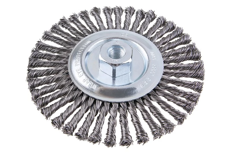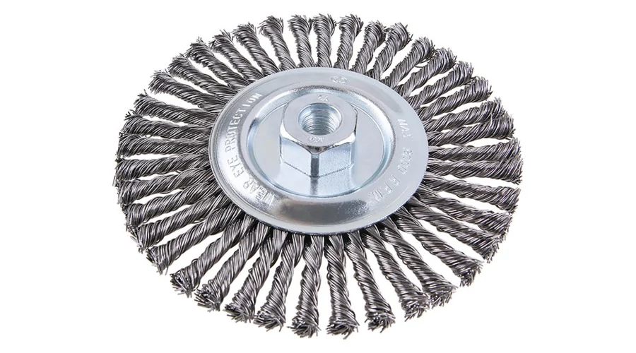 Forgókefe - radiális, kivitel: COPY - szabadalmaztatott huzal 0,5 mm - másolás, extrém terhelés mellett sem bomlik ki, a FESTA kefék garantálják a minőségi felhasznált anyagokat és megmunkálást, átmérő 150 mm Menet M14x2mm Horganyzott kefetest Huzalok száma: 1584, Huzal hossza: 27mm max. megengedett sebesség: 10000 1/min Alkalmazás: festék, rozsda, sorja, hegesztési maradványok, salak eltávolítása, érdesítés, fém tisztítása
