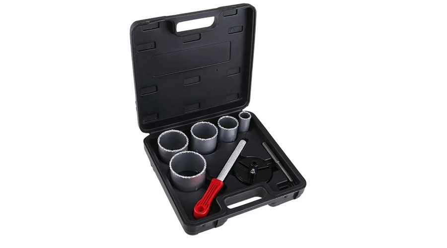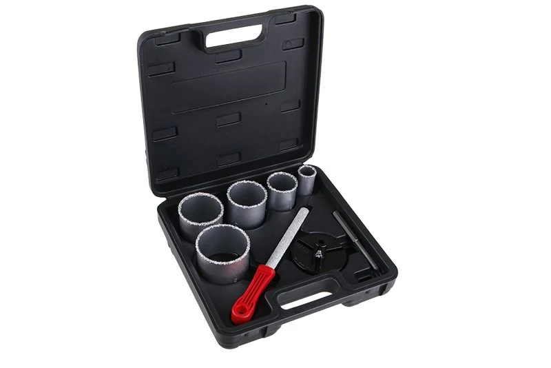 - fúrószár készlet keményfém pengével kerámia burkolólapok tiszta és precíz fúrásához reszelővel< /li> < li type="square"> készlet tartalma - univerzális csavarhúzó, speciális vezetőfúró, koronák 33, 53, 67, 73, 83 mm átmérőben, keményfém bevonatú reszelő< /li> < ul>