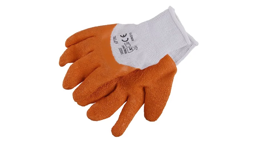 Több pamutot és kevesebb poliésztert tartalmazó kötöttáru, az illesztések felett latexbe mártva, 10-es méret.
