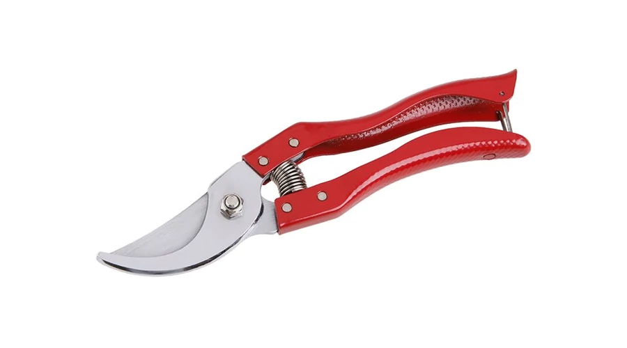 Kerti olló rozsdamentes acél pengével, ergonómikusan kialakított nyéllel, rozsdaálló rugóval, nyitás-zárás zárral, hossza 210 mm.