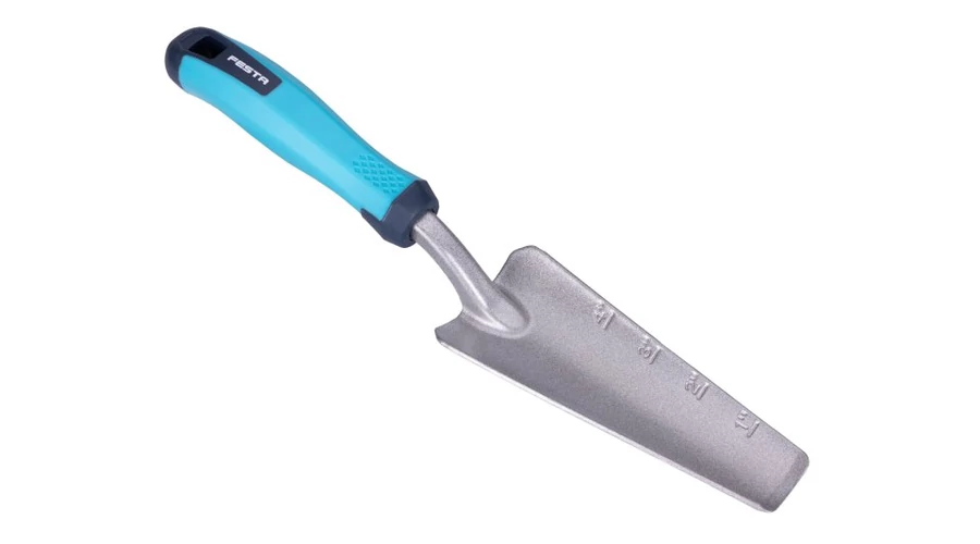 - kerti lapát - keskeny kialakítás, tartós és könnyű alumíniumötvözetből, ergonomikus gumírozott nyéllel