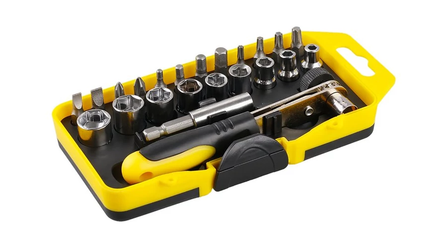 Kétoldalas racsnis készlet bitekkel és adapterekkel 1/4" 23 db