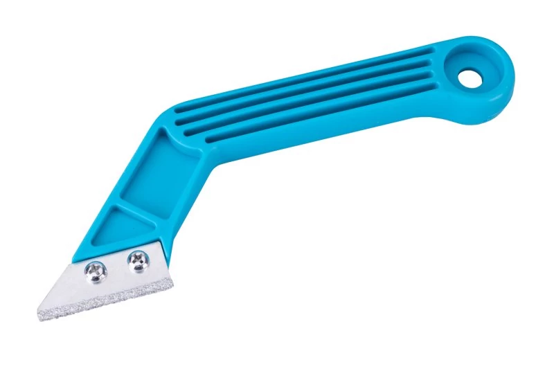 Fugatisztító, méret: a csiszolólap hossza 50 mm, a lemez csiszoló része - szintetikus gyémánt, felhasználás: csempék és térkövek hézagainak tisztítására fugázás előtt, vagy régi fugázóanyag eltávolításakor, műanyag ergonomikus fogantyú a kényelmes és szilárdság érdekében tartás, lemezek tömör csavarral rögzítve - kioldó még erős mechanikai igénybevételnek is ellenáll, tartalék planchet a csomagban - rendelési szám 37009, csomag: euro lyukkal ellátott kártya.