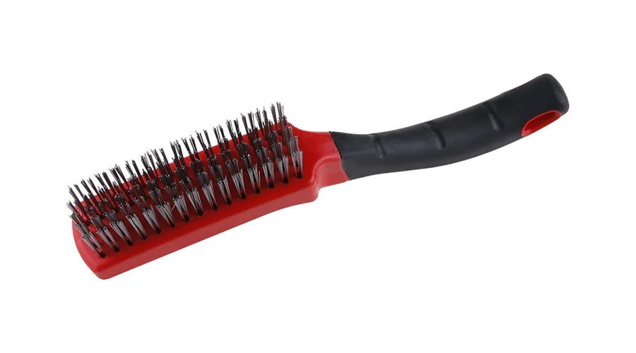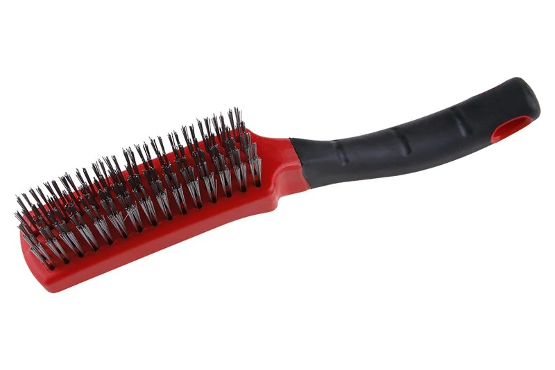 Acélkefe - kézi, acélhuzal - horganyzott, műanyag test, hossz 270 mm, ergonomikusan kialakított nyél, 5 sor, huzalok száma: 1800, felhasználás: vasfémek tisztítására, pl. acél, rozsdamentes acél, öntöttvas, érdesítés és érdes régi bevonatok eltávolítása, ….