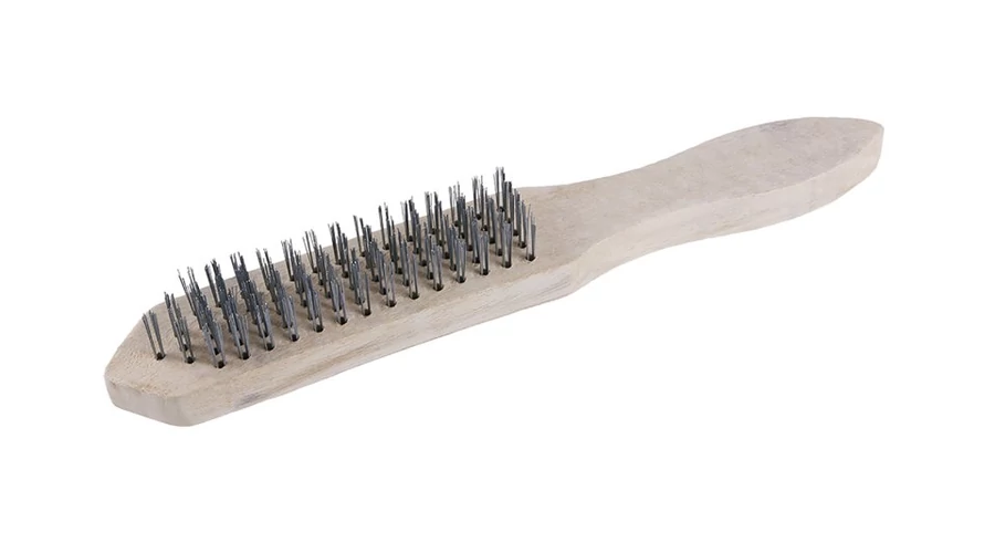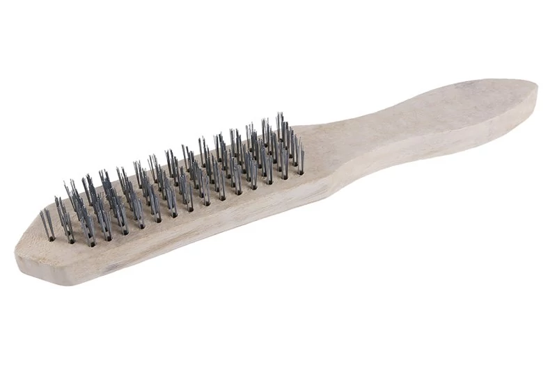 Acélkefe - kézi, acélhuzal - horganyzott, fa test, hossza 300 mm, ergonomikus kialakítású fogantyú, 5 sor, huzalok száma: 1200, felhasználás: vasfémek, például acél, rozsdamentes acél, öntöttvas, érdesítés és érdes tisztítására régi bevonatok eltávolítása, ….