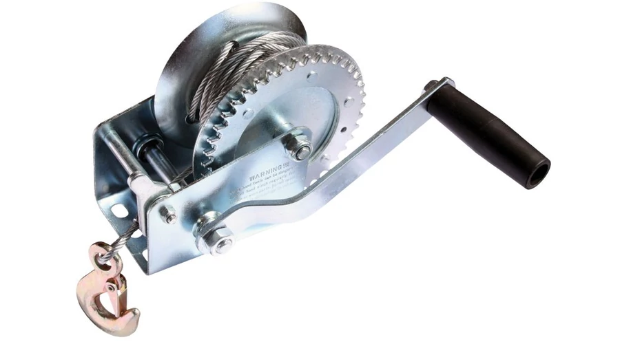 Kézi kötélcsörlő. Vonóerő 1350 kg, acélkötél hossza 10 m. A csörlő terhek vontatására szolgál, pl. A szerkezet és a felületkezelés ellenáll a kedvezőtlen időjárási hatásoknak.
